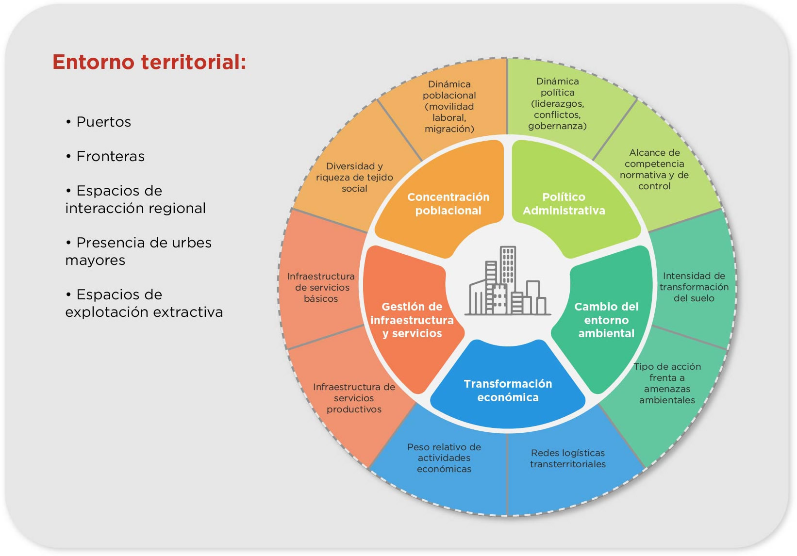 Toda ciudad enfrenta retos comunes: la concentración poblacional, la infraestructura y servicios; la actividad económica, la administración del territorio y el manejo del suelo. Estos retos se “traducen” en relaciones con su entorno: movilidad demográfica, redes logísticas; las relaciones mercantiles, su perfil productivo; el tipo de interacción con su entorno ambiental, etc.